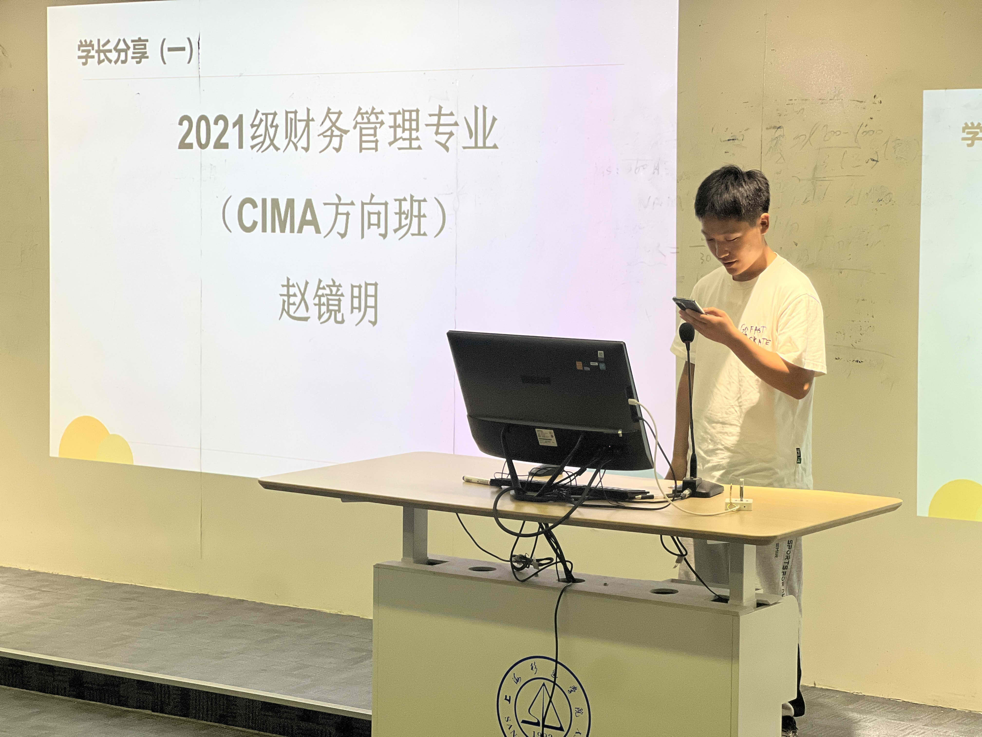 接着,21级财务管理(CIMA方向班)的赵镜明学长分享了他的考试心得。学长特别介绍了如何快速做题以及心态调节的重要性。他的经验分享让学弟学妹们颇受启发,为他们即将面临的考试提供了宝贵的参考。