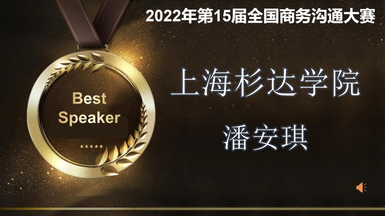 2022商务沟通比赛Best Speaker 最佳演讲者 上海杉达学院潘安琪