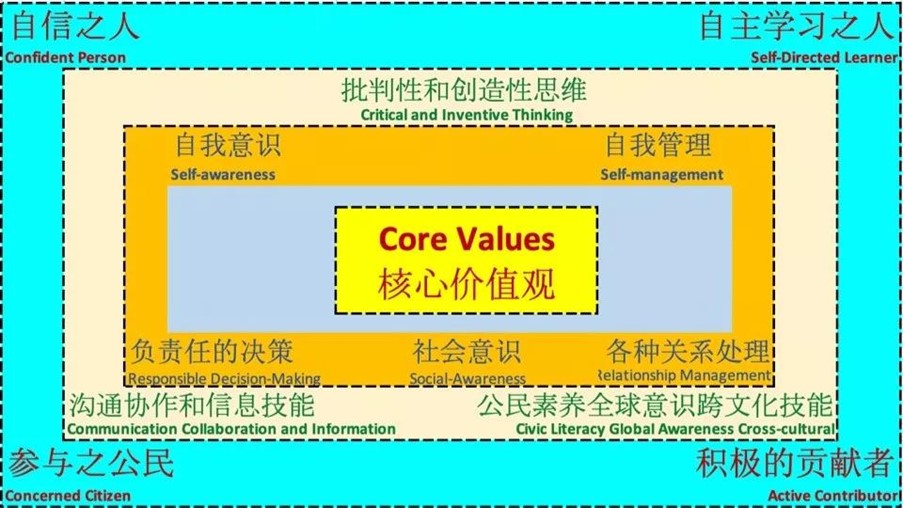 图4是新加坡提出的21世纪的人才培养,21世纪新加坡人应该有什么样的价值观?21世纪除了要有跨文化的能力,要有一些创新的、批判性的思维,这些能力最终对标培养目的。面对高速发展的、高度不确定的21世纪,我们想培养会终身学习的人。