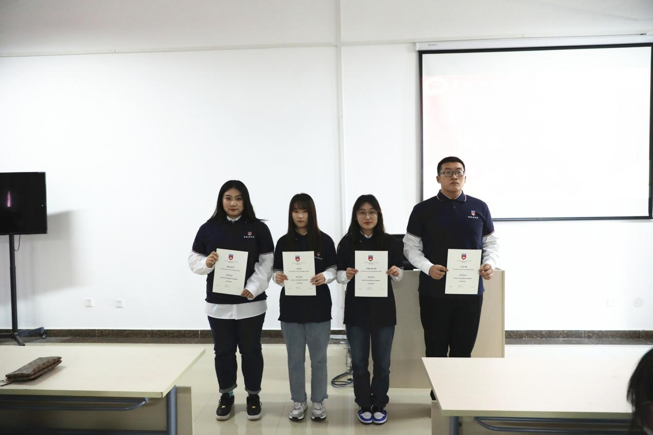 之后,指导教师胡国庆老师为我们商务沟通最具潜力奖的The Spark队伍颁奖: