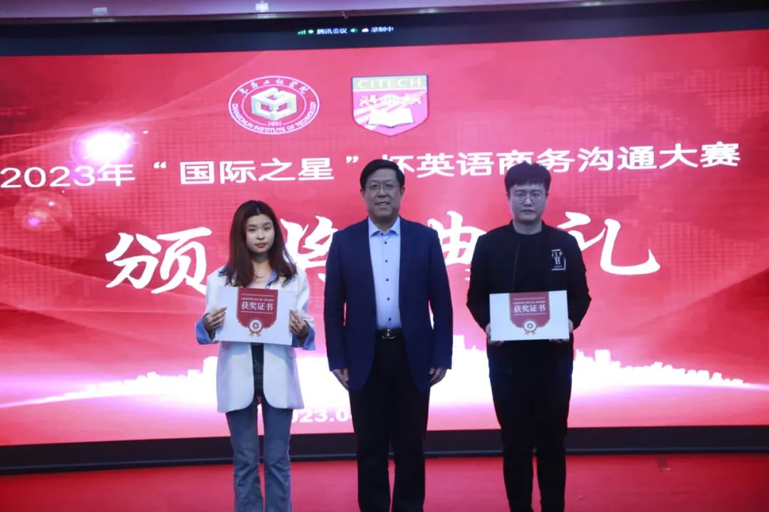 4月9日下午,首届“国际之星”杯英语商务沟通大赛决赛暨颁奖典礼在我校湖西校区第二报告厅举行,至此历时一个月的大赛圆满落幕。我校及新加坡特许科技学院的相关领导、决赛评委、部分参赛队伍的指导教师、决赛参赛选手及其助威团队参加了活动。
