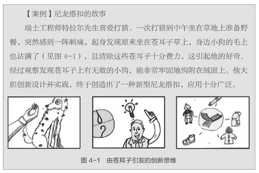 ①联想性。利用已有的经验或他人的成果,积极寻找事物之间的关系,通过联想举一反三、触类旁通。如鲁班造锯子。