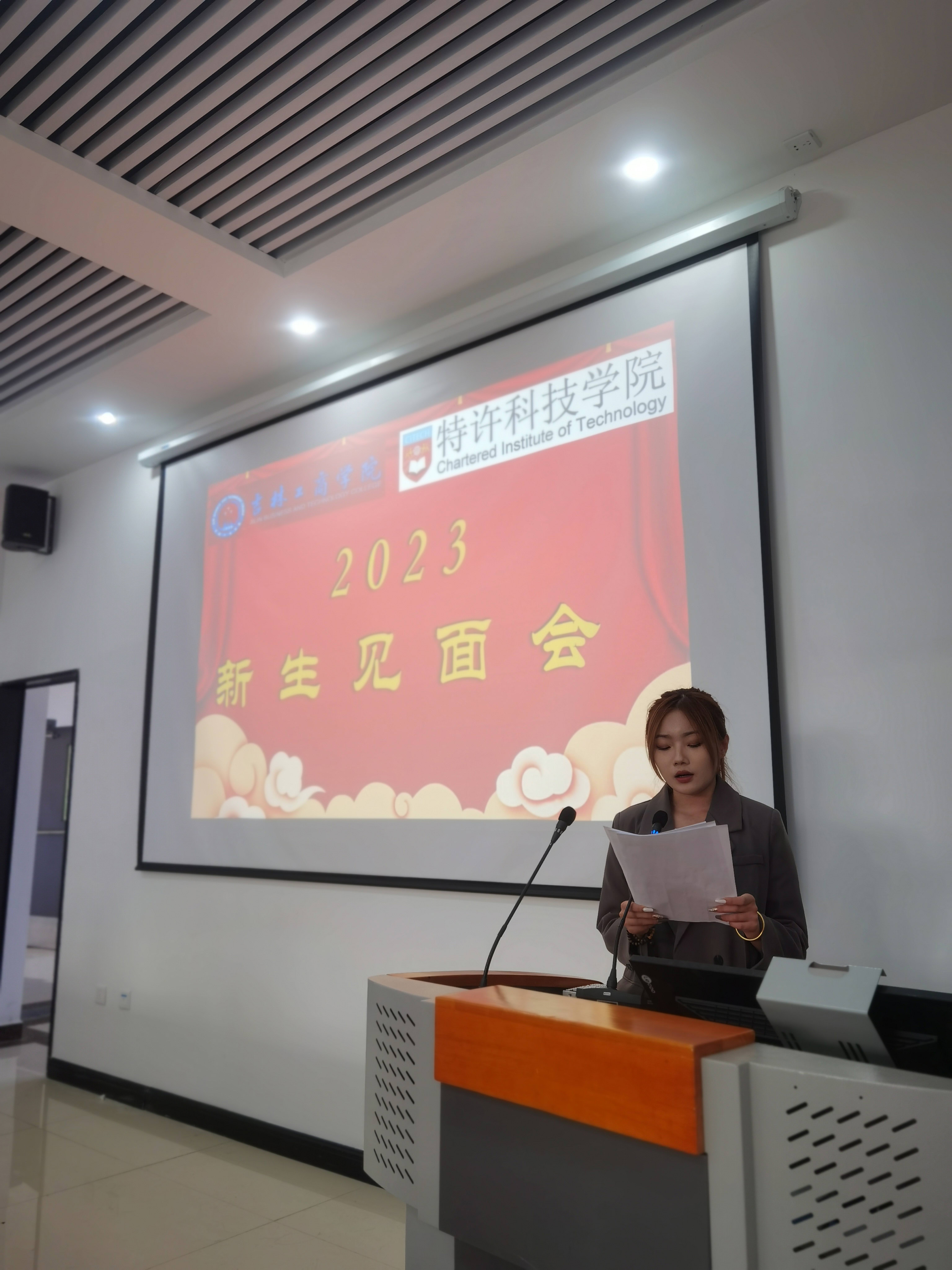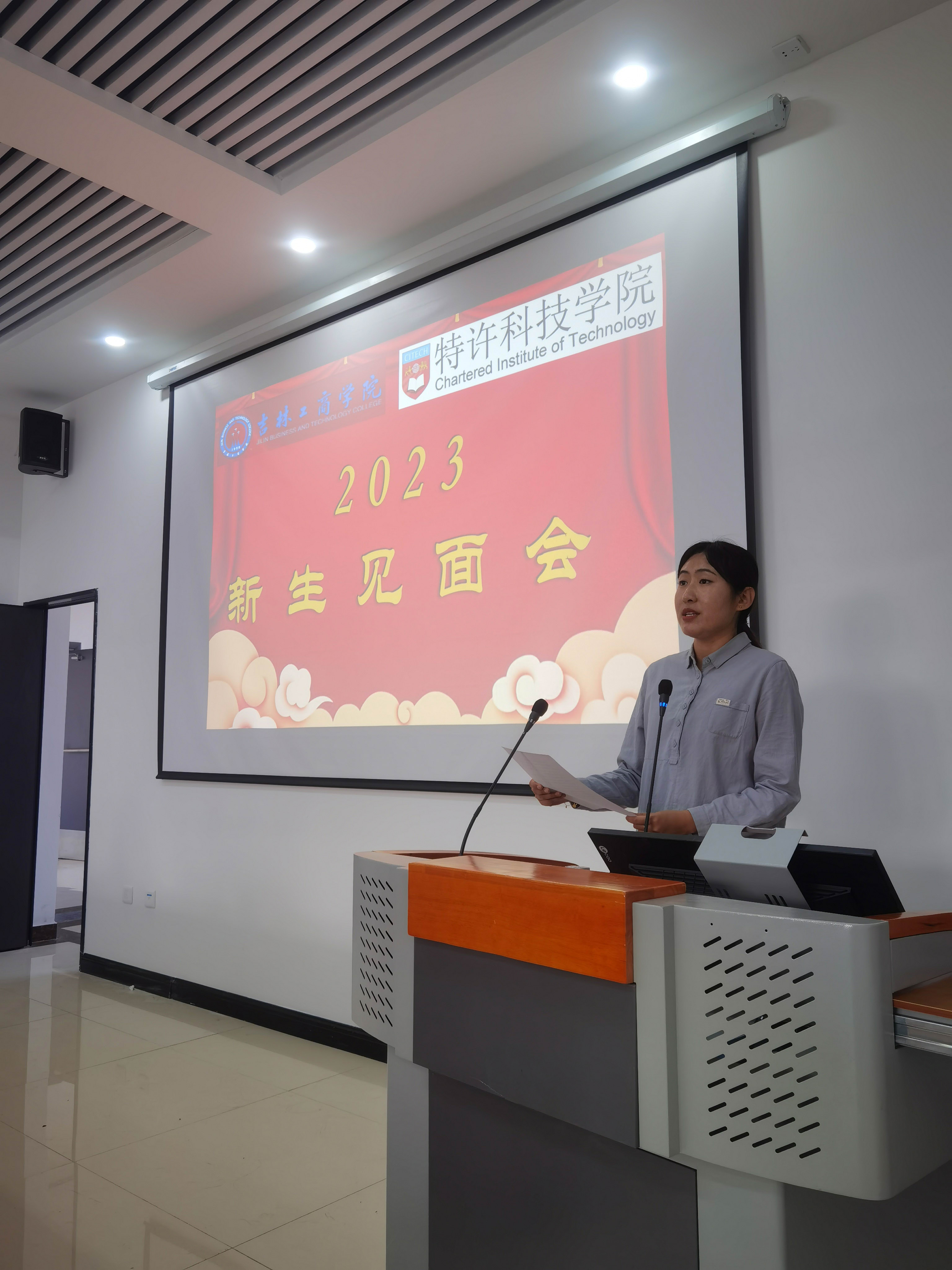 她向大家介绍了中新合作班的教学特色及培养目标,同时特许科技学院也将为学生搭建更广阔的平台展示自我,鼓励新生养成独立思考的能力,积极规划美好人生。