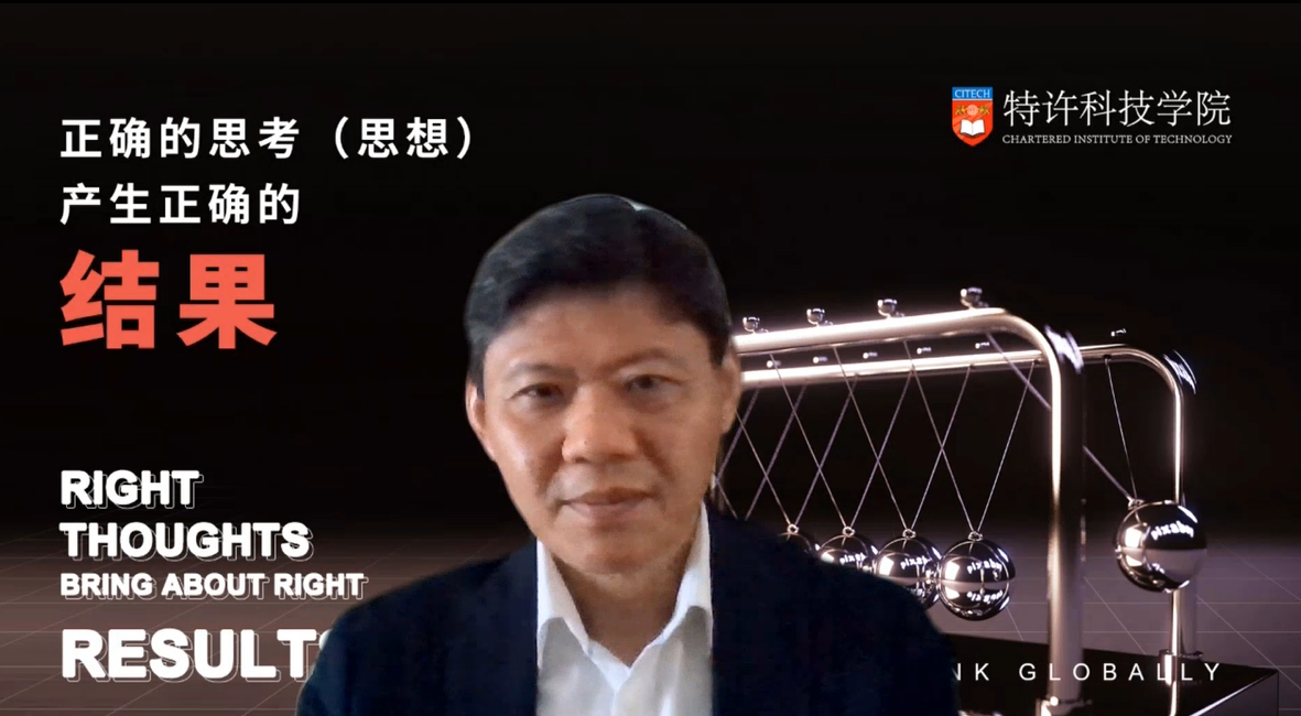 新加坡特许科技学院李德威院长虽然没有莅临现场,但他仍心系学生,为同学们录制了欢迎视频,给大家带来新学期寄语,希望同学们心怀理想,勇往直前!