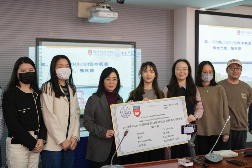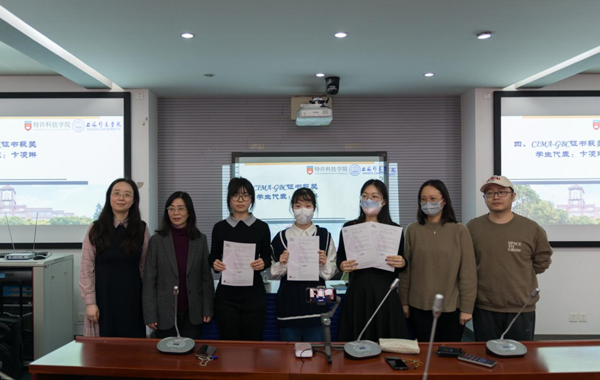 接着由本次全球CIMA运营级案例分析统考中取得中国区最高分的涂书琳同学诚挚发言,并发获奖证书及奖金。这份成就离不开涂书琳同学的日以继夜的努力学习,也离不开我院国际化办学特色、引进优质教育资源、创新教学模式、聚焦高质量人才的培养方针。