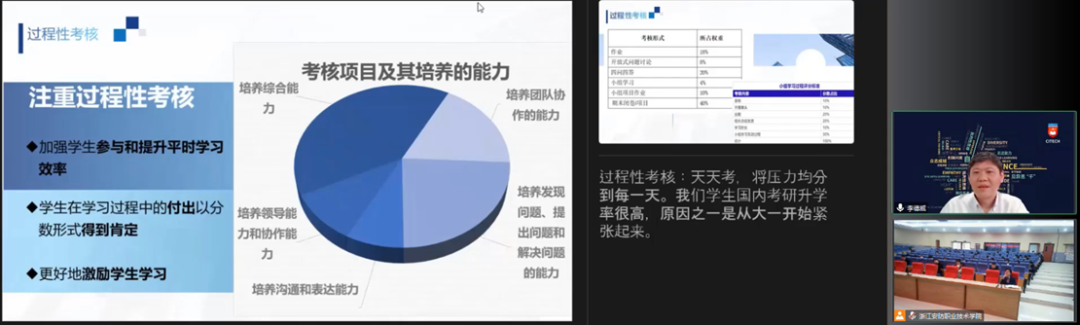 李院长指出教学要有评价,我们的教学评价是贯穿于教学的过程性考核。过程性考核包含了以学生为中心的教学和实践各方面的考量,通过对学习过程的设计完成过程性学习结果的体现。所以过程性考核天天考,将压力分摊到每一堂课中,学生每堂课都在学习和考核,当学生在大三准备考研的时候就不会从心理上感觉到极大的压力,这也是提高学生升学率的重要因素之一。