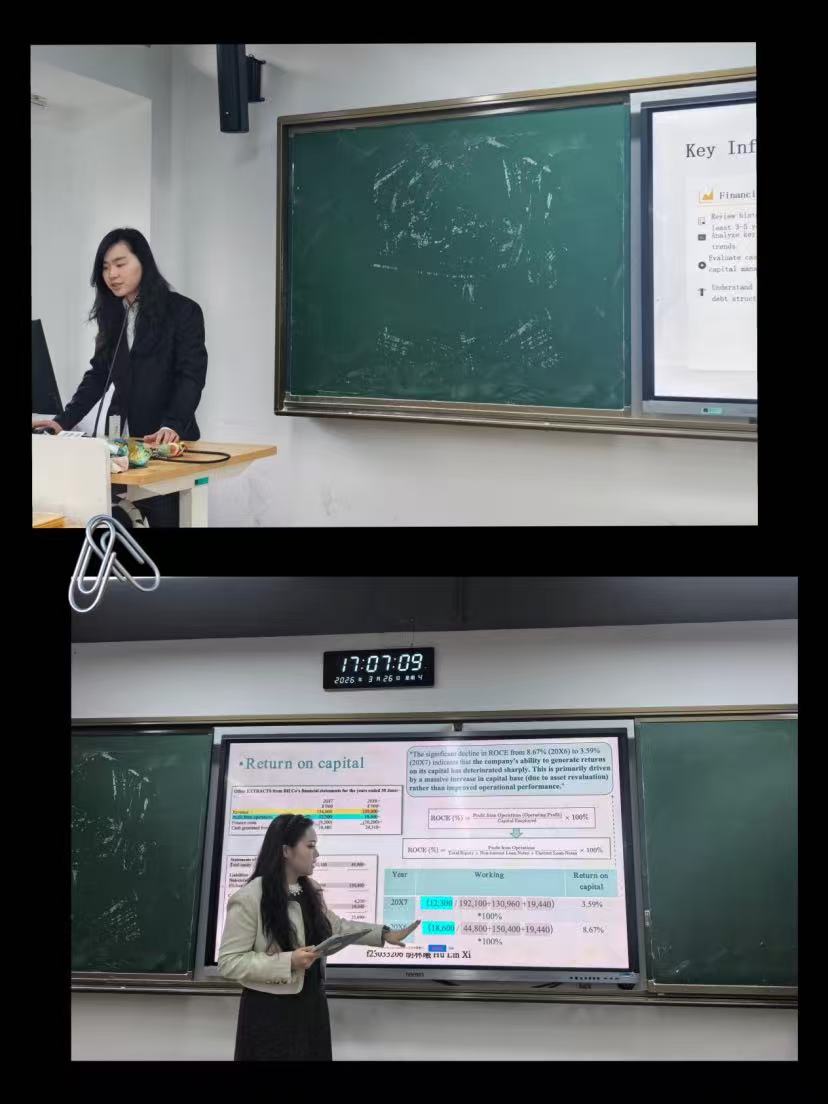 决赛围绕财务分析与收购考量展开,紧贴财会实务场景,既是对专业知识的综合检验,也是学院培养高层次管理会计人才的实践探索。学院以赛事为纽带深化产教融合,通过实战化项目训练,提升学生财务分析、逻辑研判与全英文综合表达能力,助力学生成长为兼具实践能力与创新精神的高素质管理会计人才。