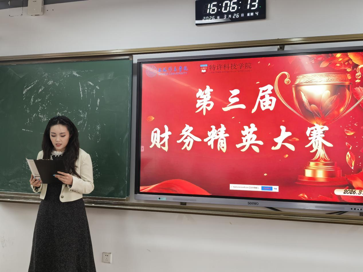 赛场竞锋芒,笃行促成长。2026 年 3月,新加坡特许科技学院(CITECH)为上海杉达学院 2023级、2024级财务管理 CIMA方向班精心策划的财务精英大赛圆满落幕。本次大赛特邀新加坡外教 May Goh 老师担任评委,五支晋级队伍同台竞技,充分展现了CIMA学子扎实的专业素养与团队风采,践行了学院“以赛促教、以赛促学、赛训融合”的活动宗旨。