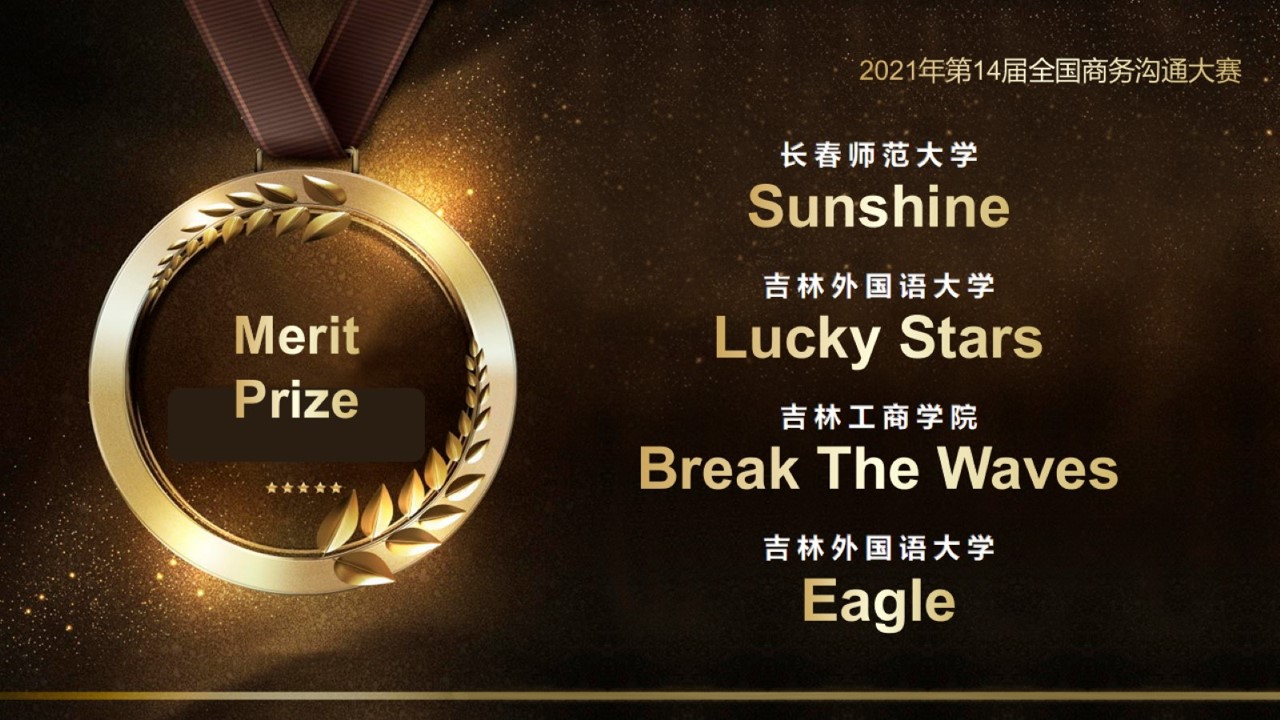 2021年12月15日,我院举办了2021年第十四届全国商务沟通大赛,来自于吉林工程技术师范学院、吉林外国语大学、吉林工商学院、长春师范大学、南京审计大学金审学院,5所学校15支队伍60位参赛选手踊跃报名。最终吉林工商学院队伍获得 Best Project 、Best Innovation Award 、Best leader 奖项;吉林工程技术师范学院获得 Best Team 、Best Potential Award 奖项;南京审计大学金审学院获得 Best Project 、Best Speaker 奖项;吉林外国语大学及长春师范大学获得 Merit Prize 奖项。
