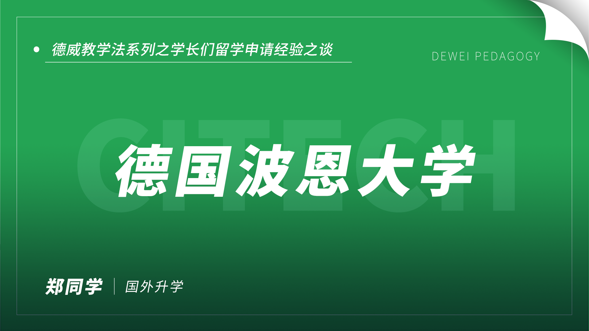 “申请德国大学前,有笔试和面试环节,是根据大学期间成绩单中的各科程度出题,笔试和面试各占20分钟。郑同学在面试前事先到大学官网去了解面试官们研究领域,再结合搜索的研究文章去做准备。在面试时巧妙主动提出面试官研究过的领域并引导面试官朝对自己有利方向问问题。”